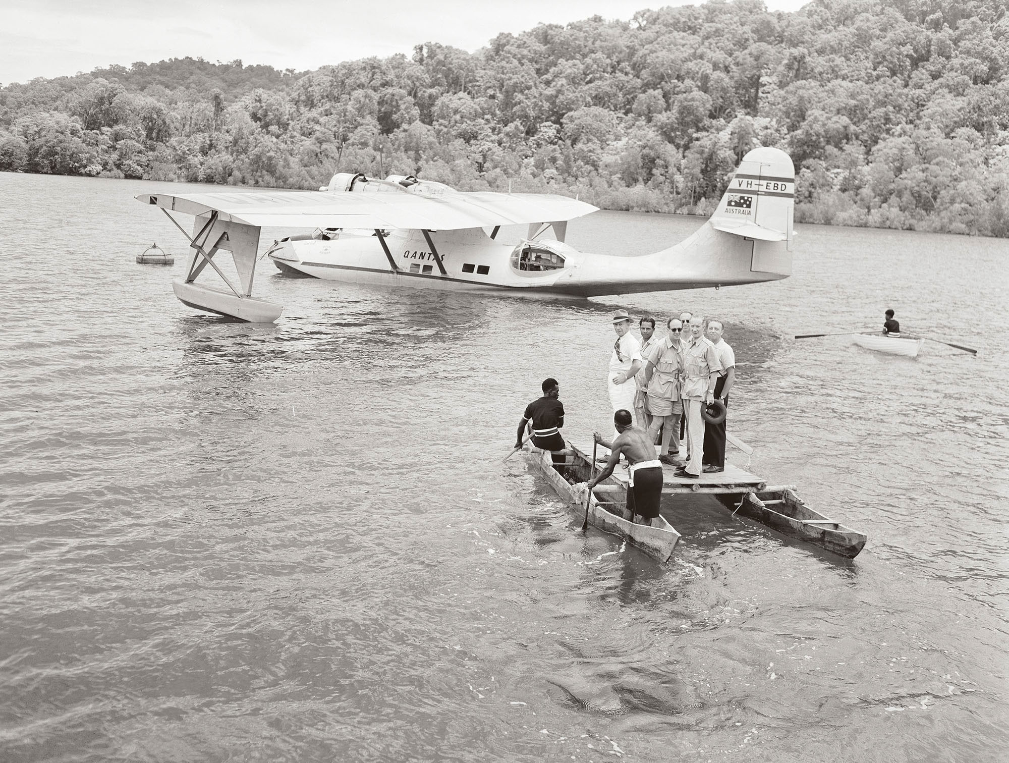 Members of the UN arrive on Tonelei Harbour at the southern end of Bougainville Island. Photographer: W. Brindle. Collection of the National Archives of Australia.